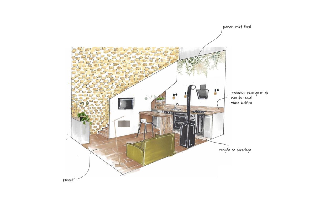 À l’issue de la présentation des trois avant-projets sommaires, les propriétaires ont affiné leur réflexion et décidé d’orienter leur projet vers de la location courte durée type Airbnb. Un changement d’usage qui a naturellement influencé certains choix d’aménagement pour mieux répondre aux besoins de voyageurs de passage.