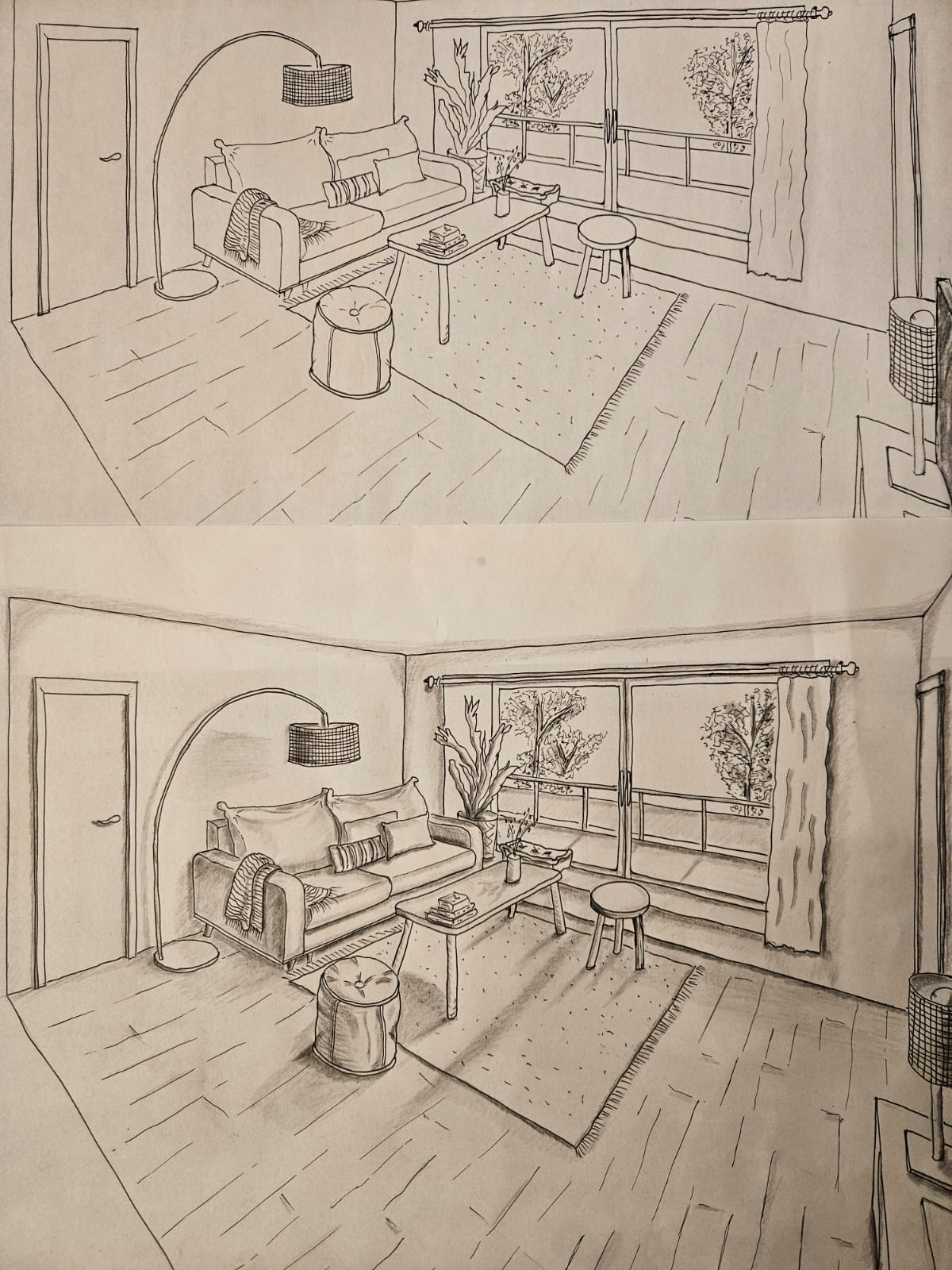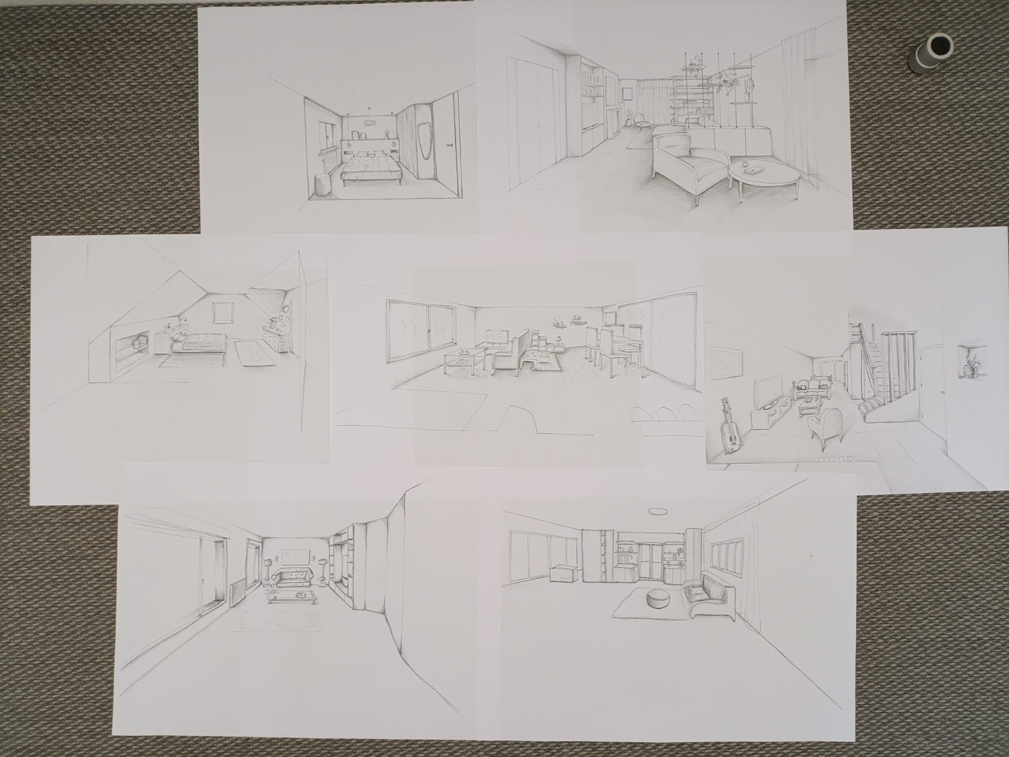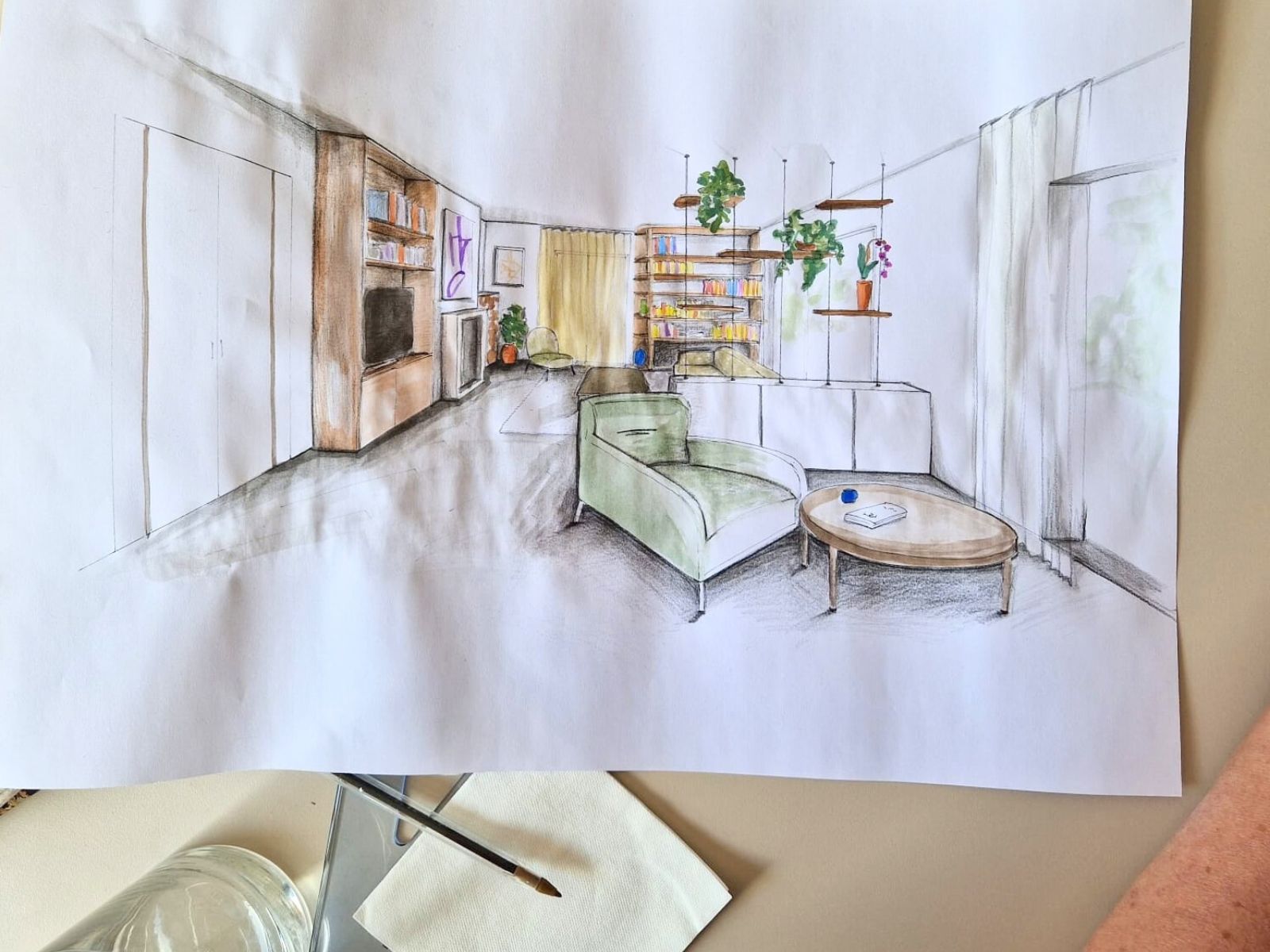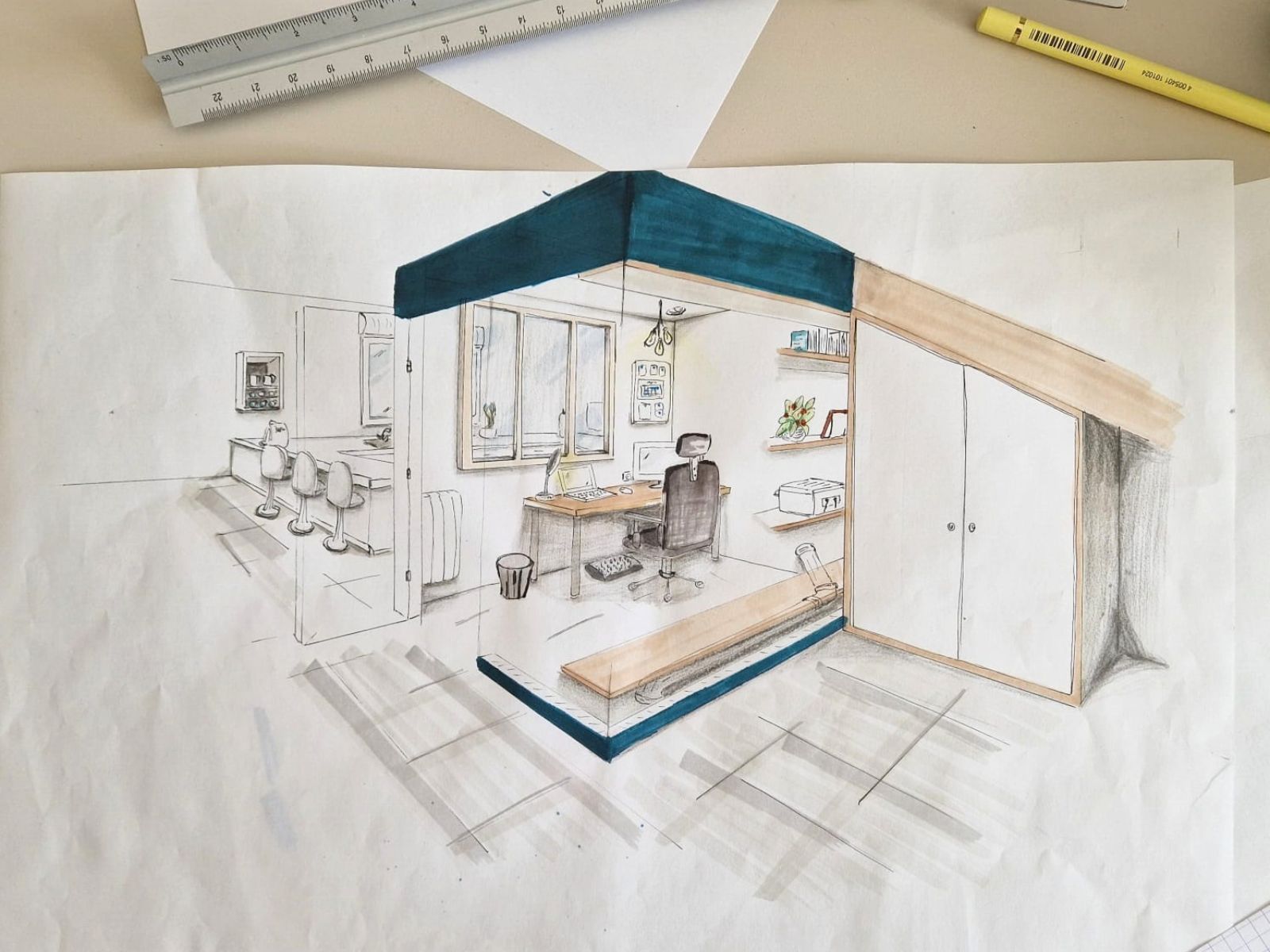 ✅ Réaliser des croquis de perspectives intérieures à la main à partir d’un plan.