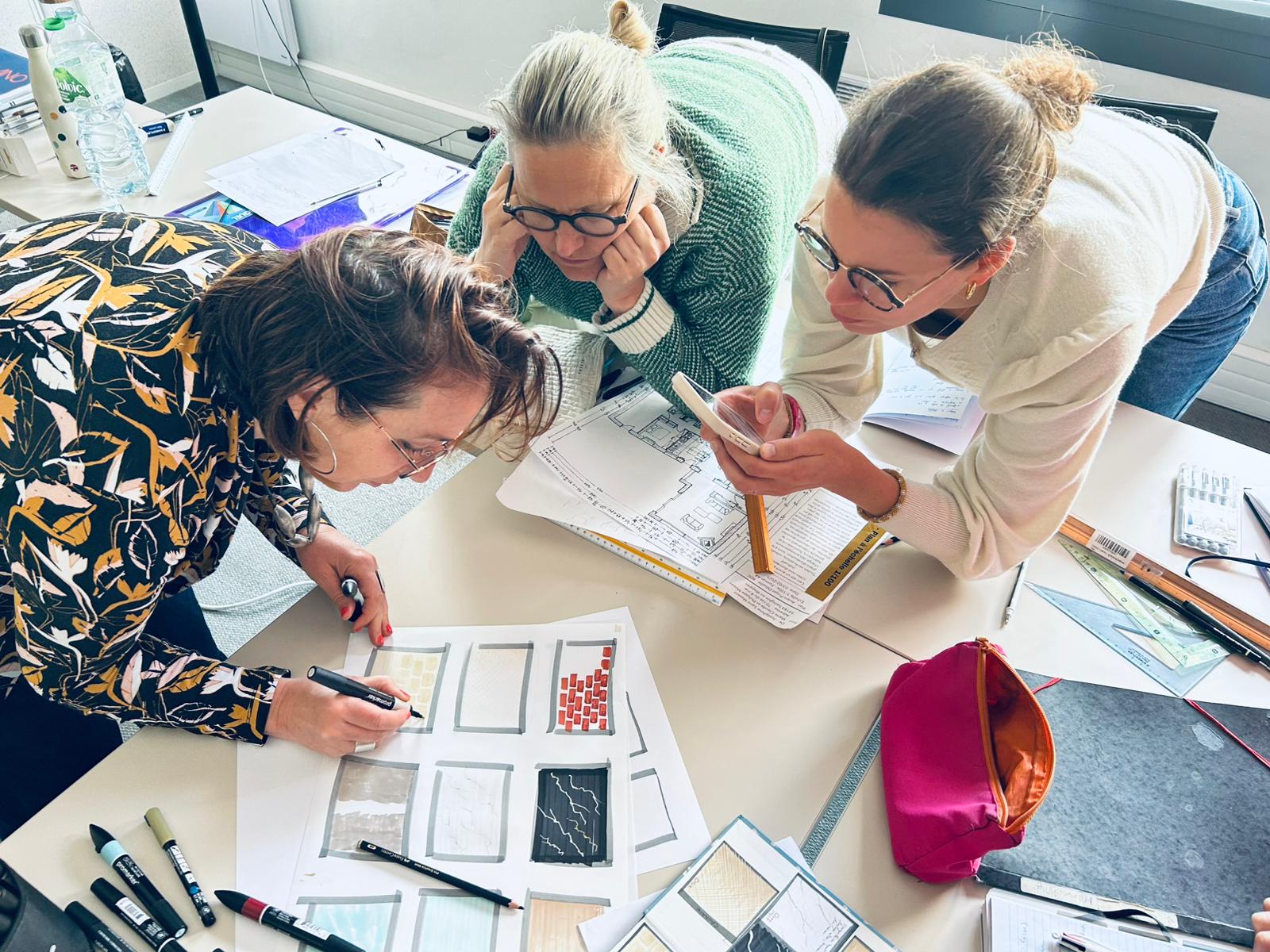 Marine, Emma et Emmanuelle reviennent sur leur expérience enrichissante lors d’un précédent stage de dessin en présentiel de 3 jours, où elles ont appris les techniques du dessin à la main en perspective.