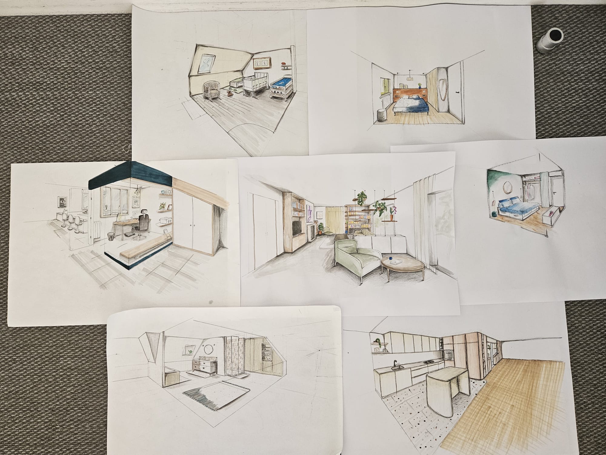 Vous repartirez avec une maîtrise des bases du croquis à main levée et du dessin en perspective (1 et 2 points de fuite). Vous saurez représenter des intérieurs avec précision, en jouant sur les proportions, les textures et les mises en couleur pour donner vie à vos idées.